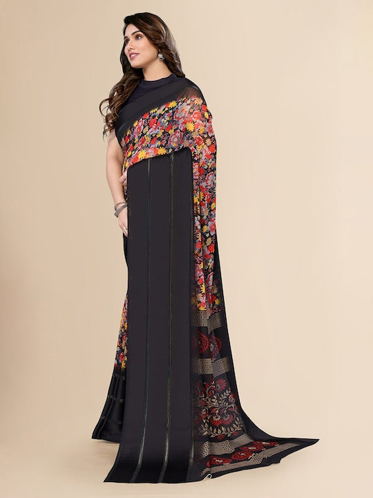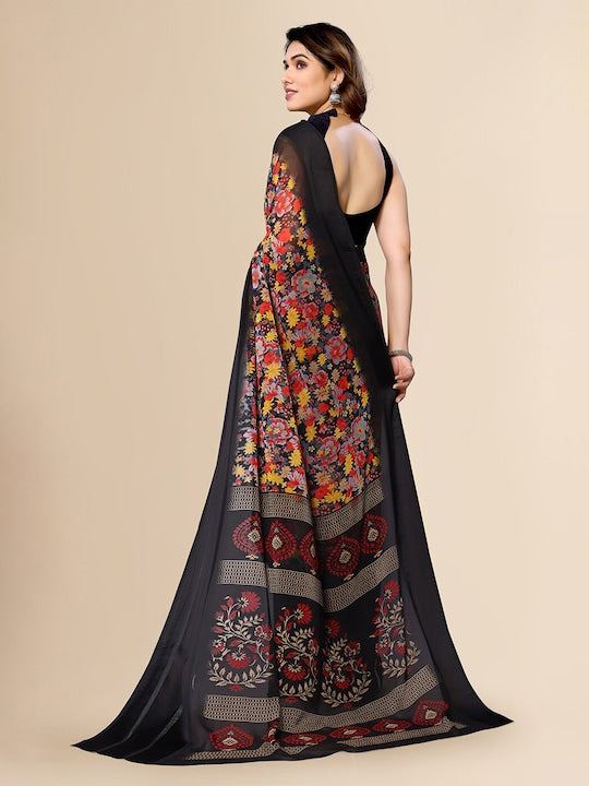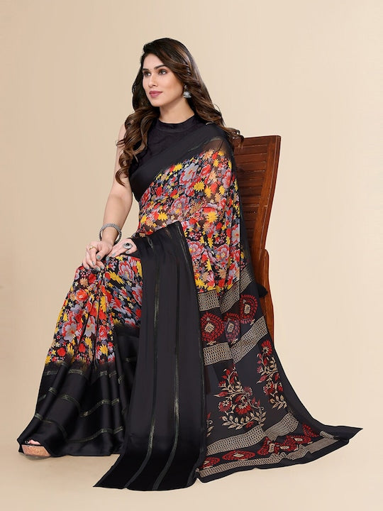 Fabmora Floral Printed Pure Chiffon Saree