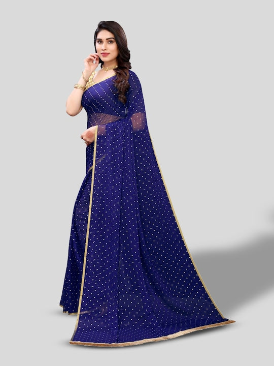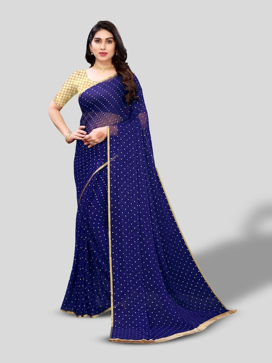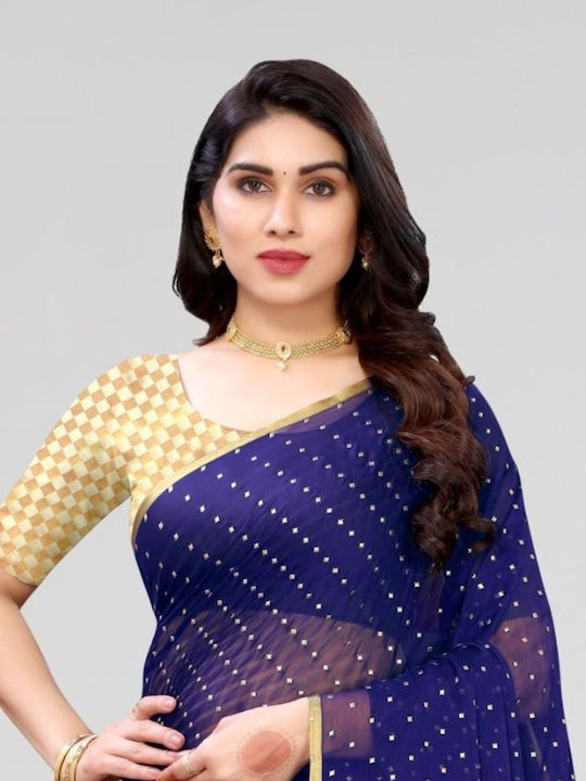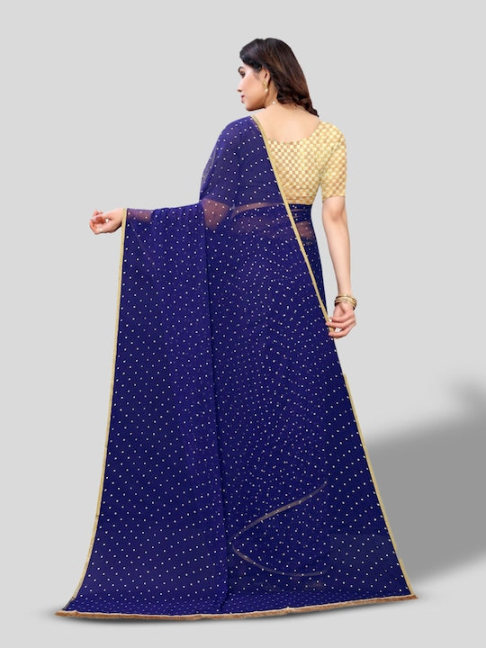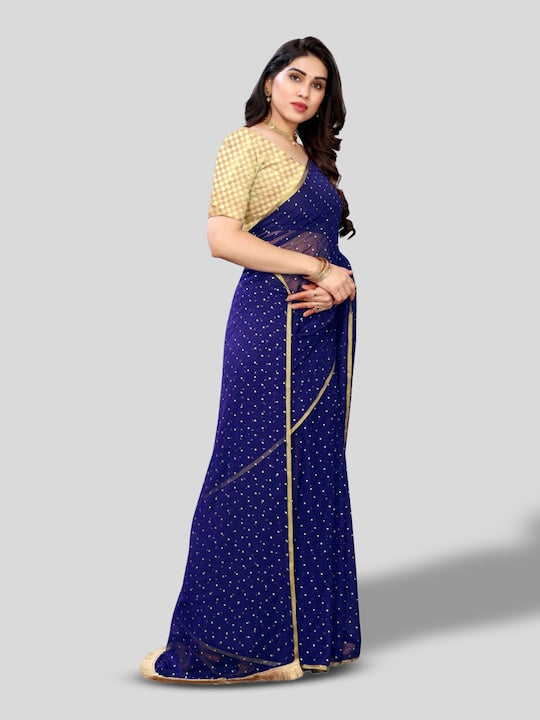 • Navy blue and gold-toned saree