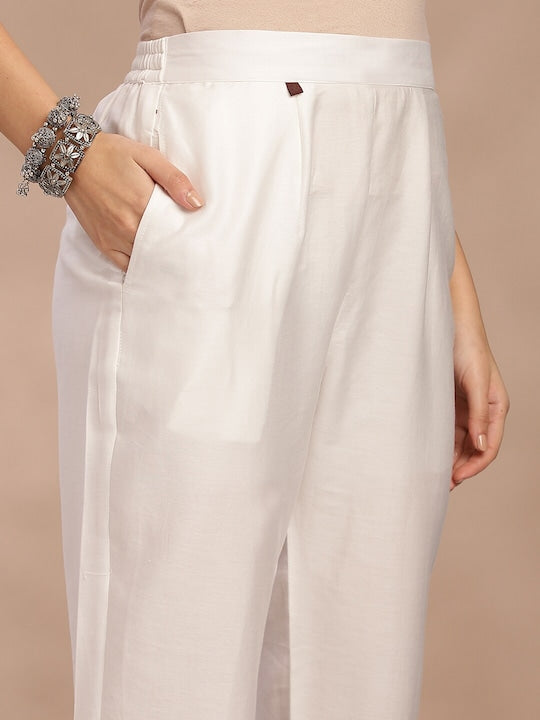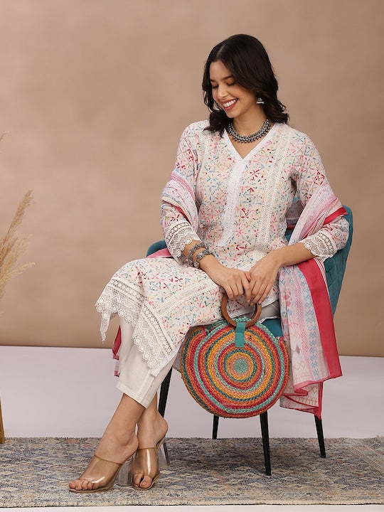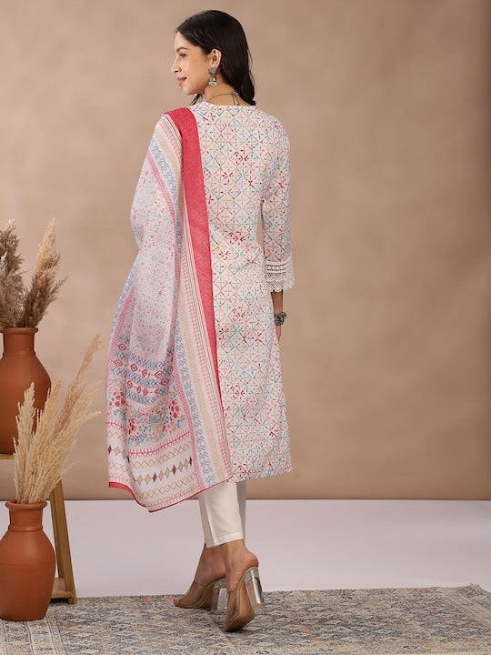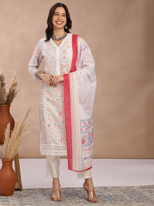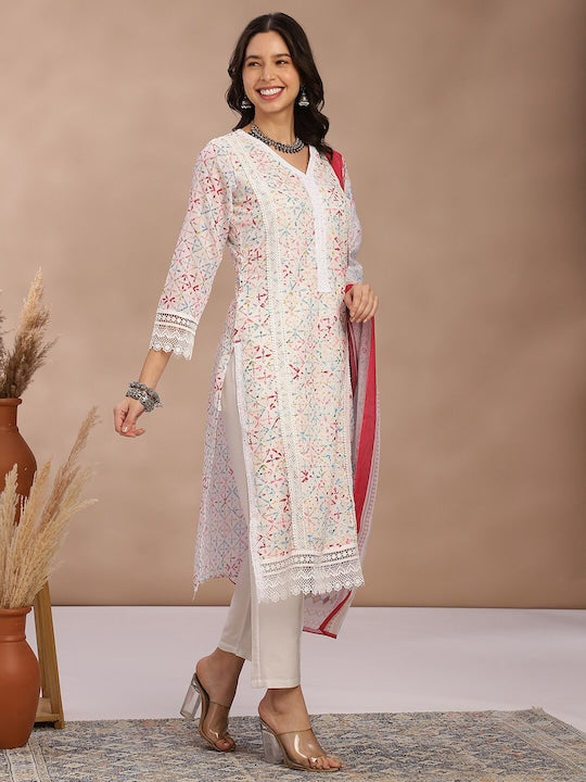 Fabmora Women Embroidered Regular Pure Cotton Kurta with Trousers & With Dupatta