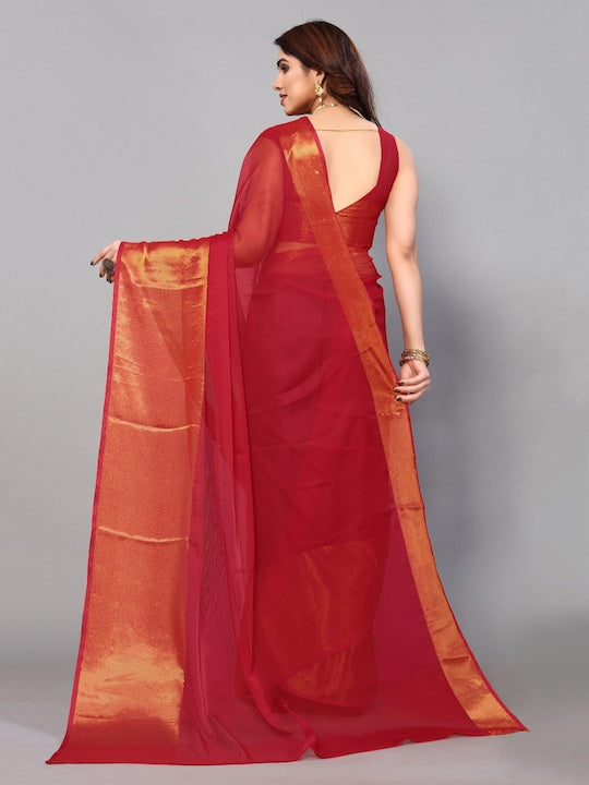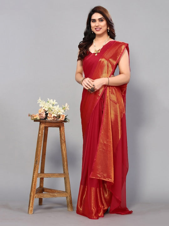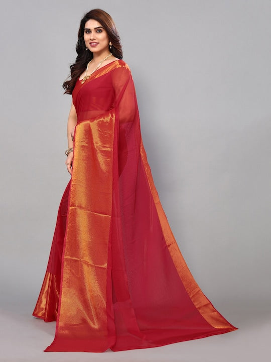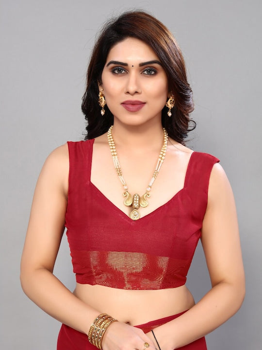 • The saree comes with an unstitched blouse piece. The blouse worn by the model might be for modelling purposes only. Check the image of the blouse piece to understand how the actual blouse piece looks.
