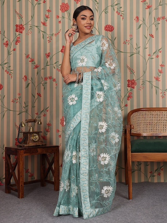- The blouse worn by the model might be for modelling purpose only. Check the image of the blouse piece to understand how the actual blouse piece looks like.