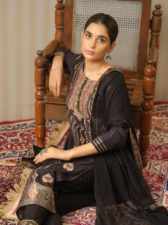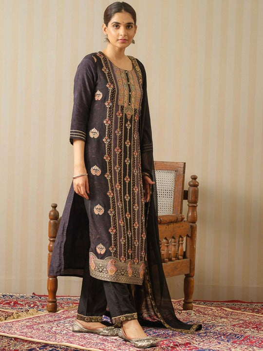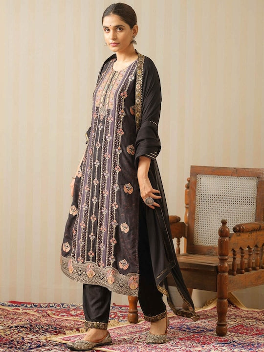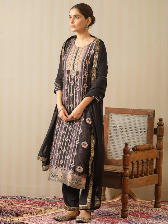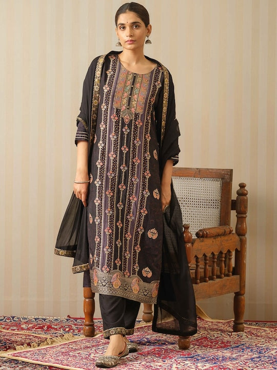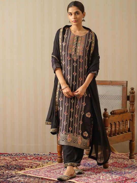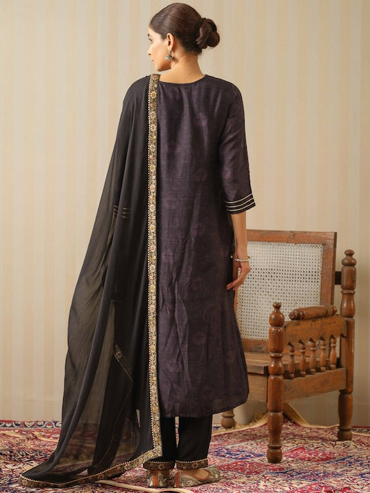 House of Pataudi Ethnic Motif Printed Straight Kurta With Trouser & Dupatta