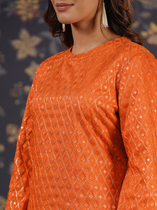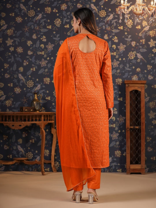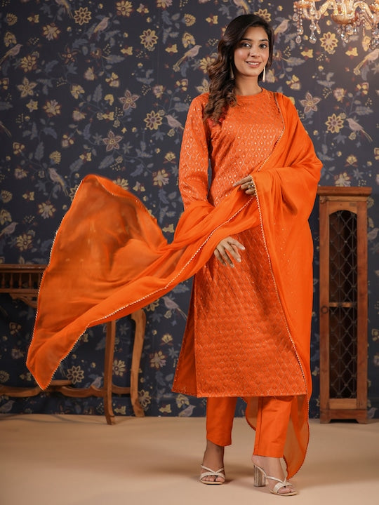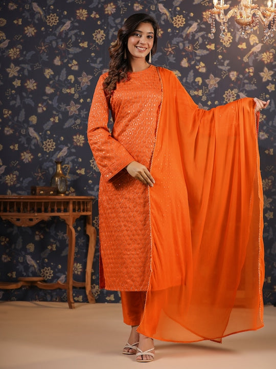 House of Pataudi Ethnic Motifs Embroidered Sequinned Jashn Kurta with Trousers & Dupatta