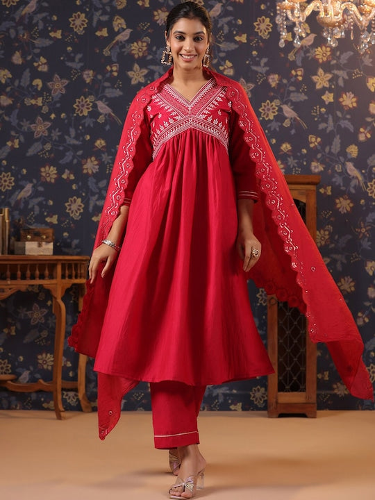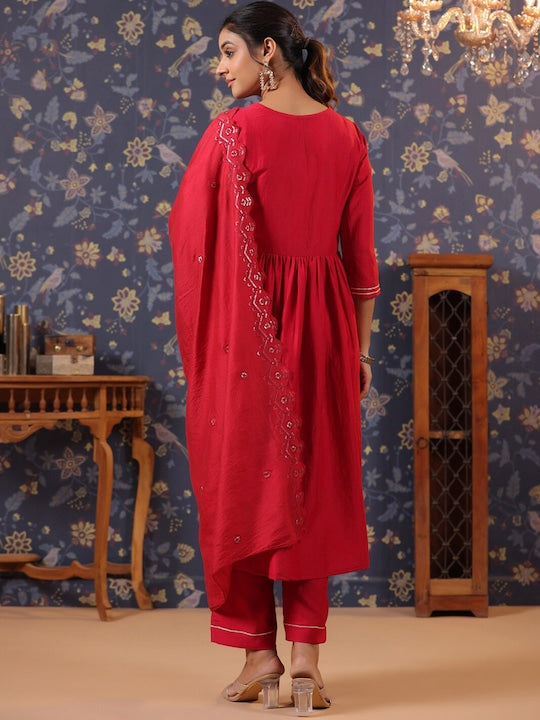 House of Pataudi Ethnic Motifs Yoke Design Straight Kurta & Trousers With Dupatta