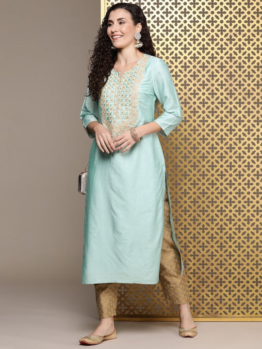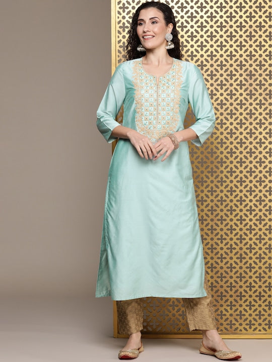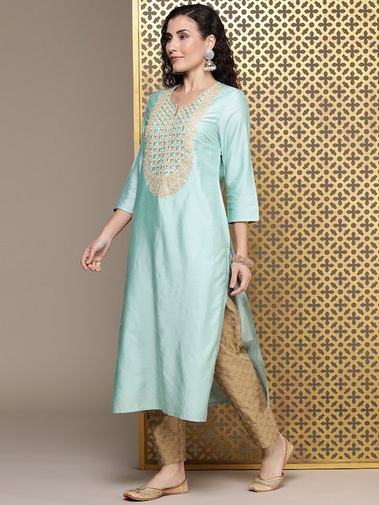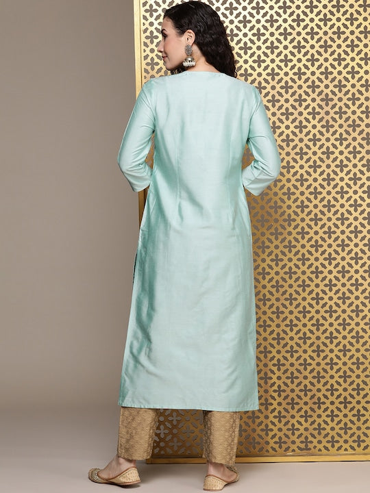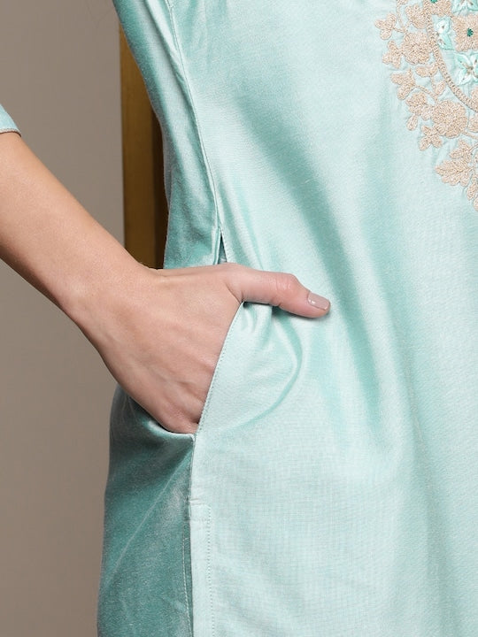 House of Pataudi Jashn Floral Yoke Design Thread Work Kurta