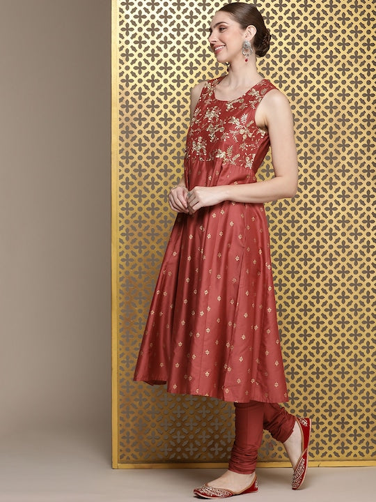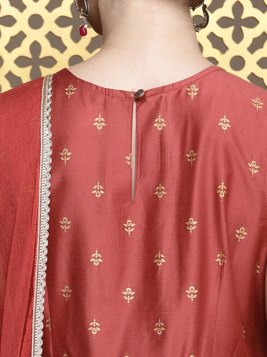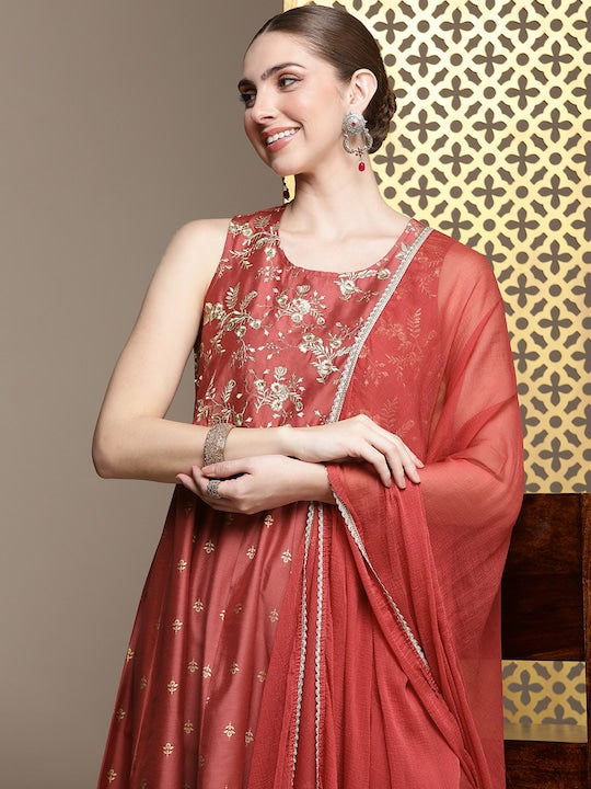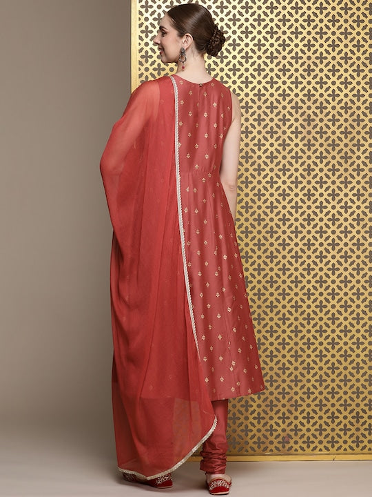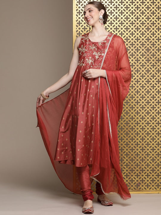 House of Pataudi Women Jashn Floral Zari Work Regular Kurta With Churidar & Dupatta