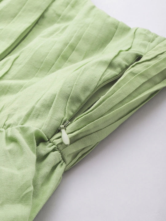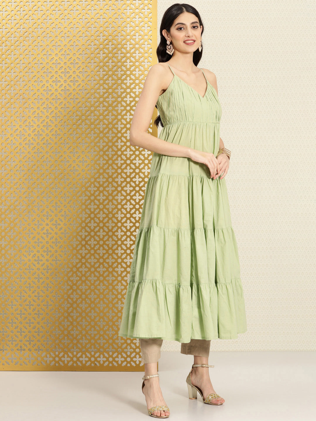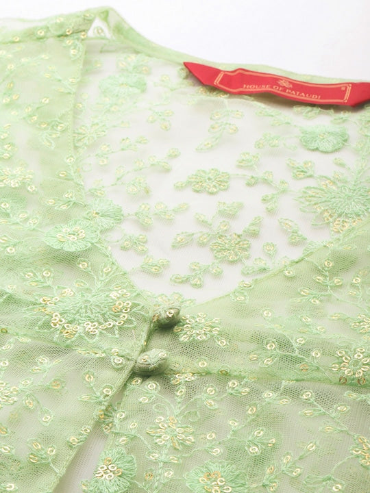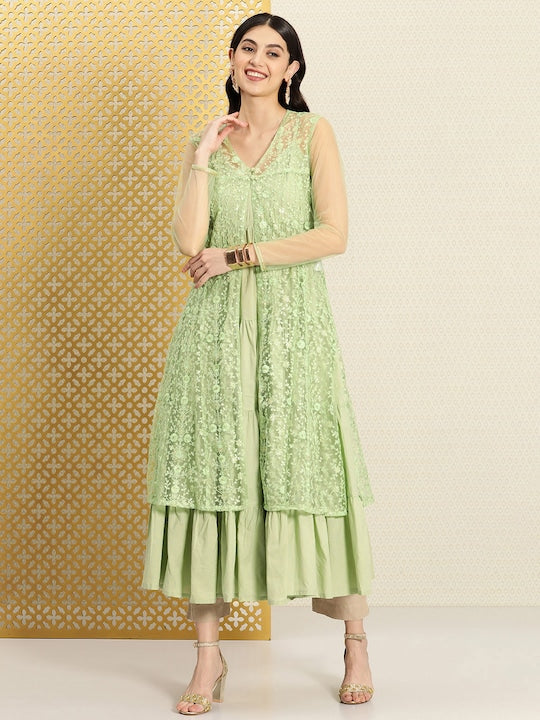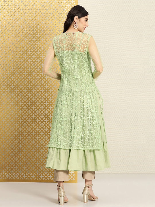 House of Pataudi Women Pure Cotton Pastels Jashn Kurta With Net Over Coat