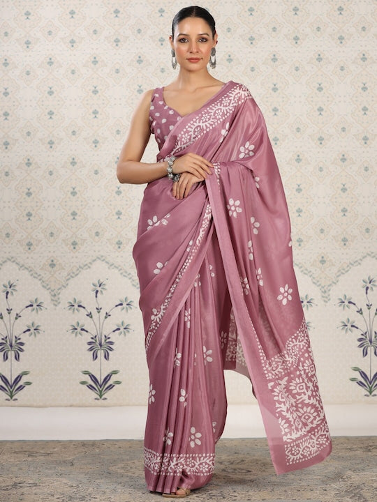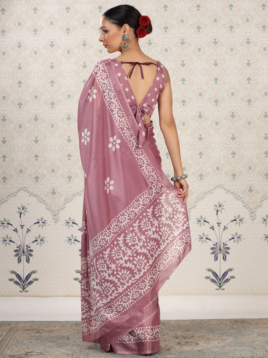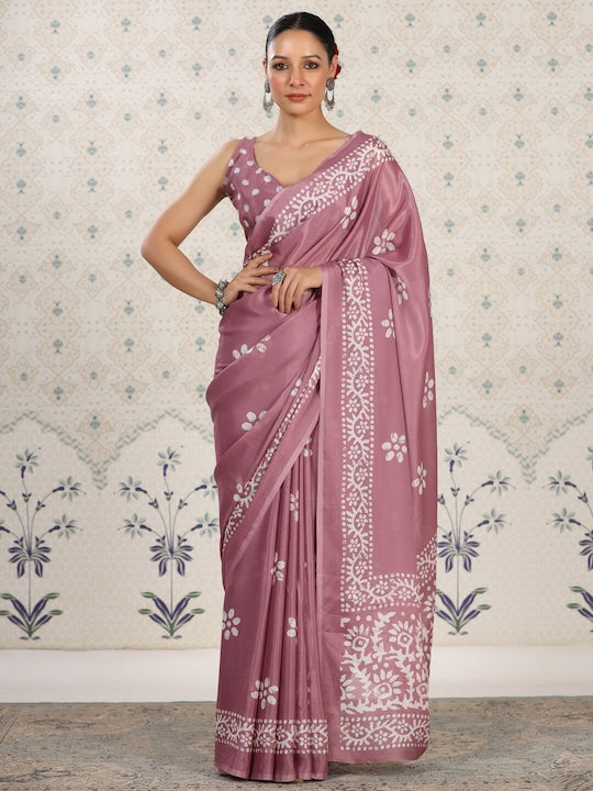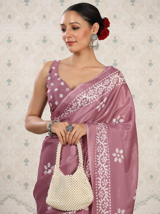 - Mauve Chinnon Schiffon Printed Saree & Chinnon Schiffon Blouse