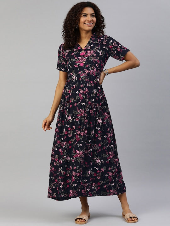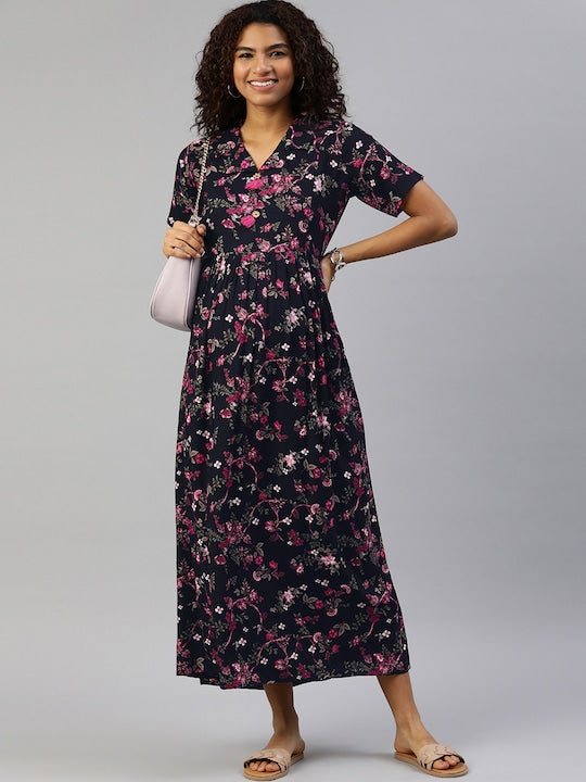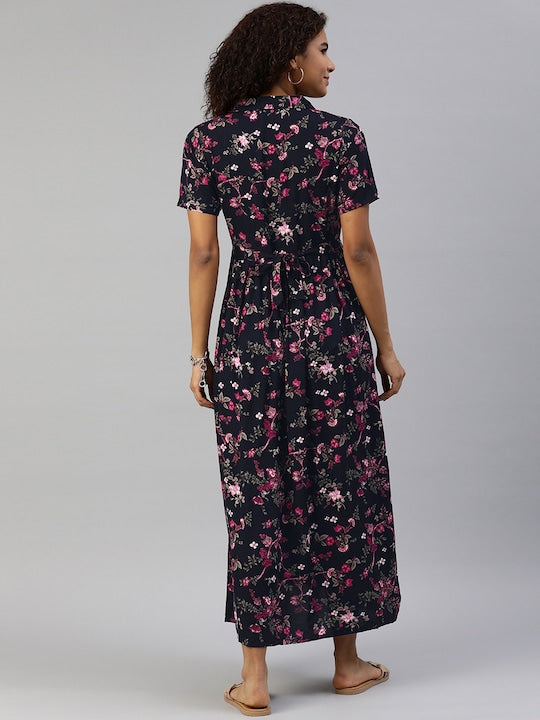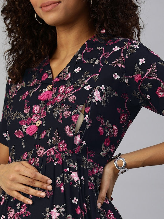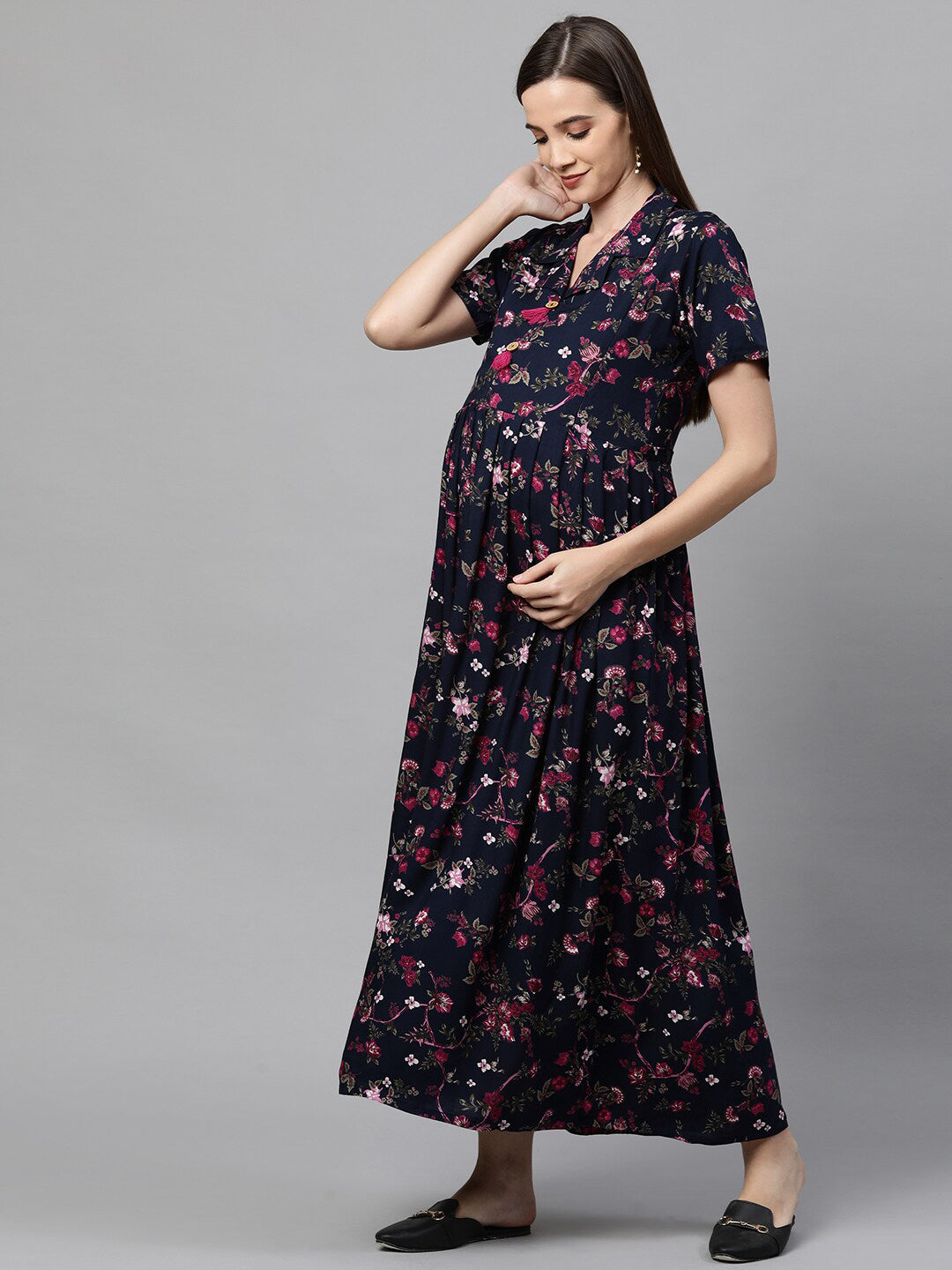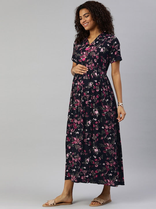 MomToBe Blue Floral Maternity Maxi Nursing Dress