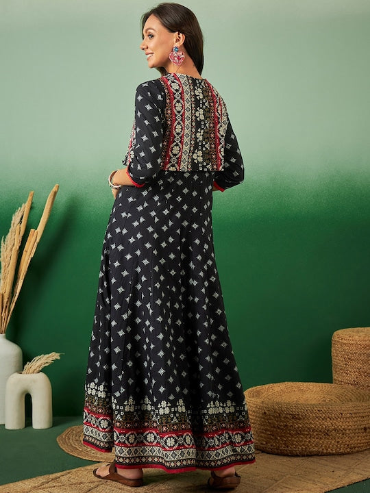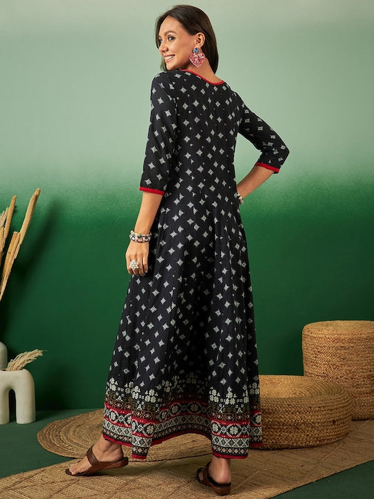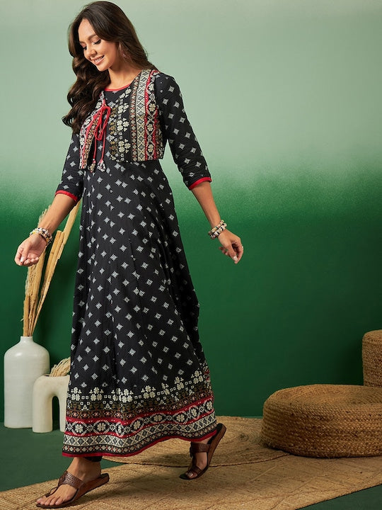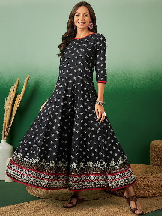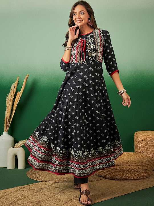 Sangria Floral Printed Pure Cotton Anarkali Kurta With Shrug