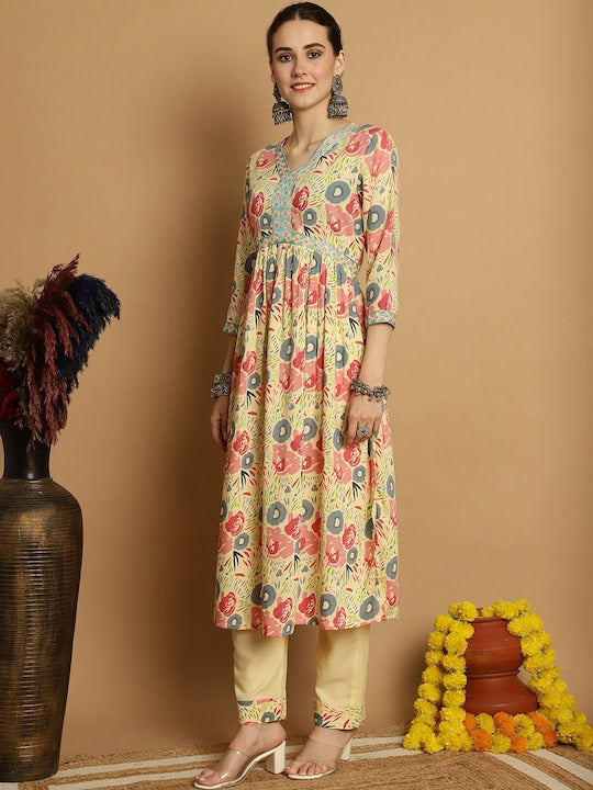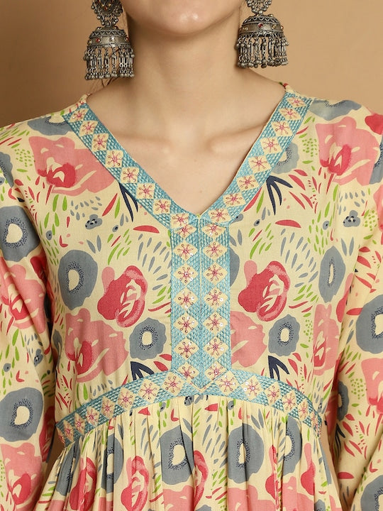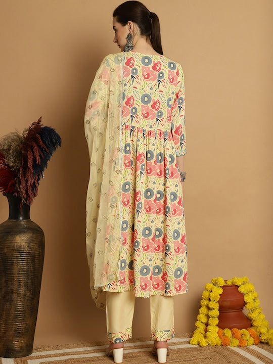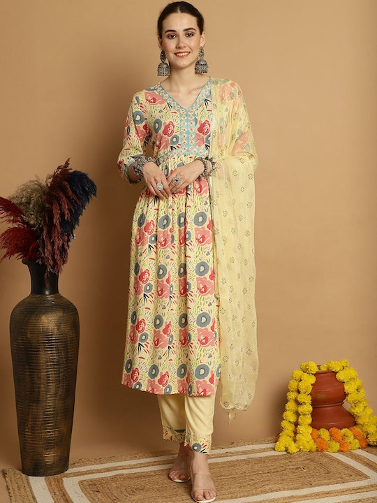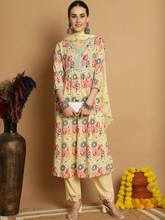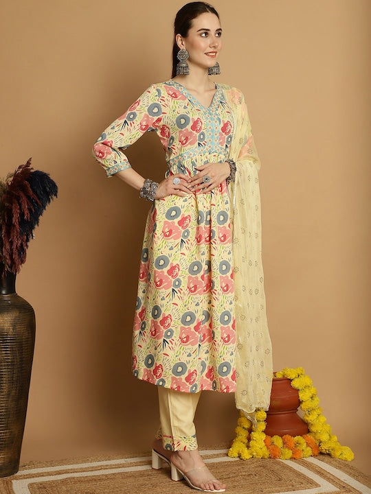 • Floral Printed Kurta Set with Trouser and Dupatta