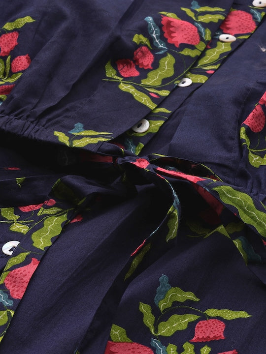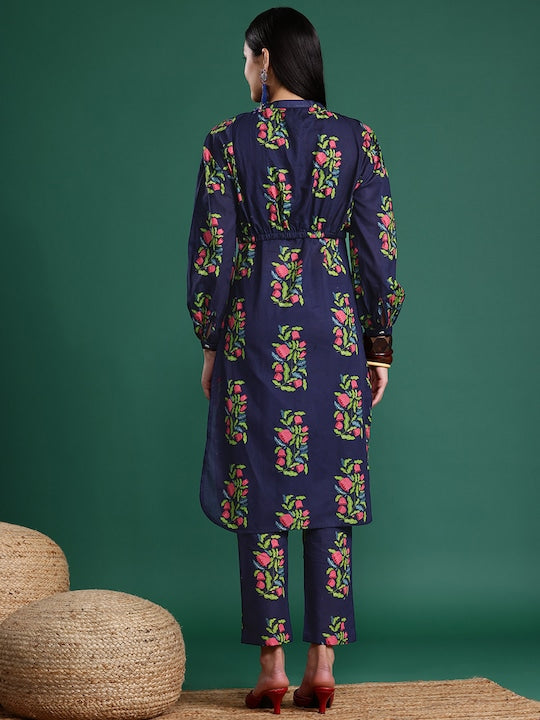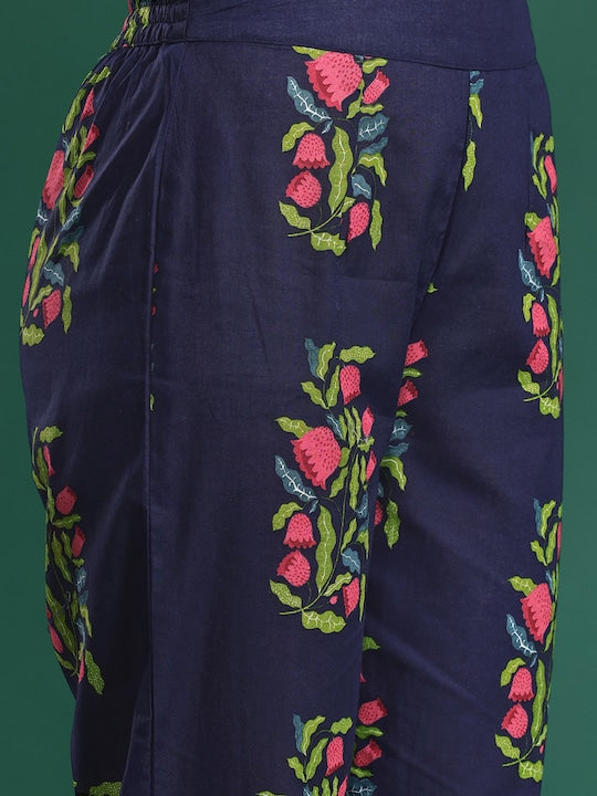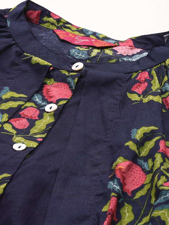 Sangria Pure Cotton Floral Print Kurta with Attached Jacket & Trousers