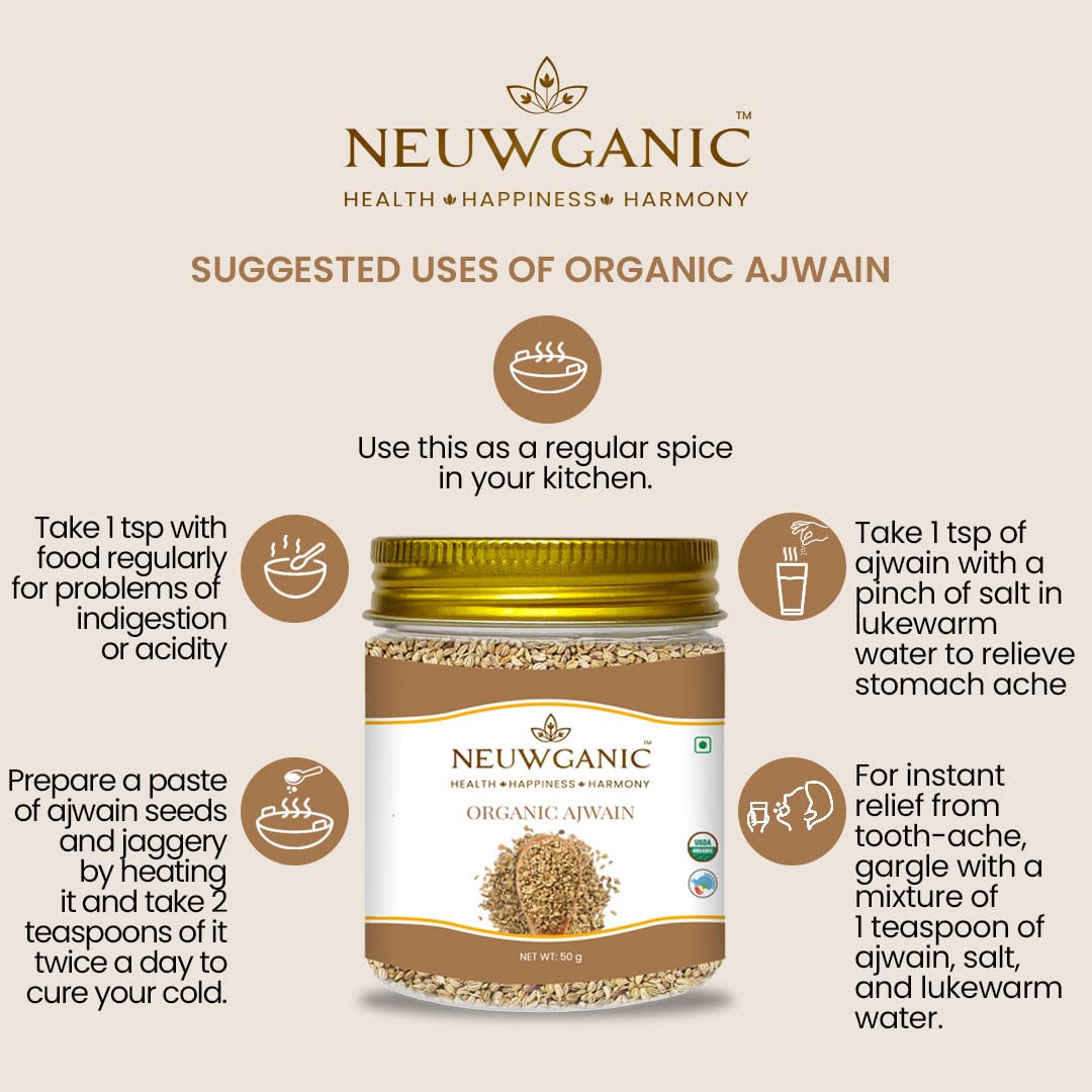 Neuwganic Organic Whole Ajwain Seed - 50 Grams