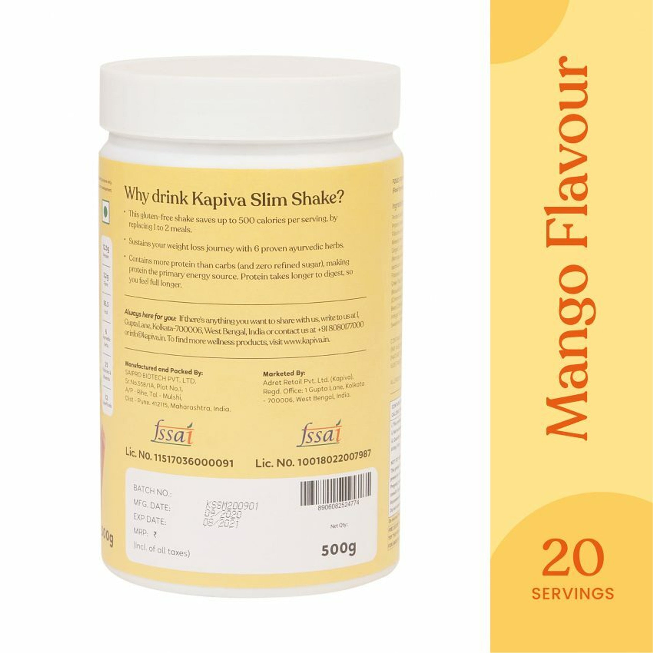 Kapiva Ayurveda Meal Replacement Slim Shake Mango - 500 gms