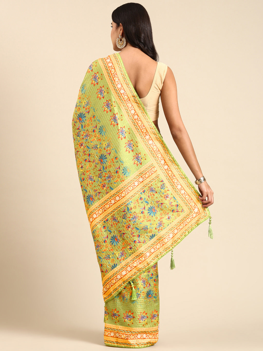 - Green and brown saree