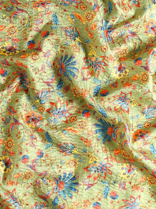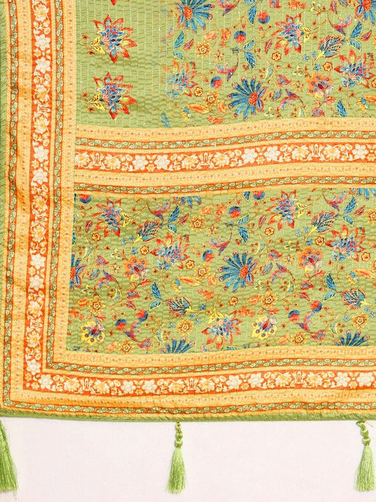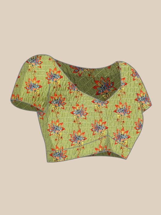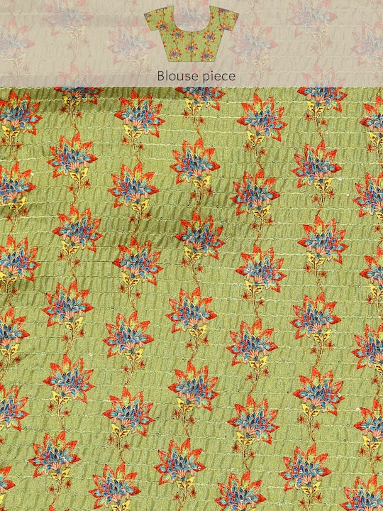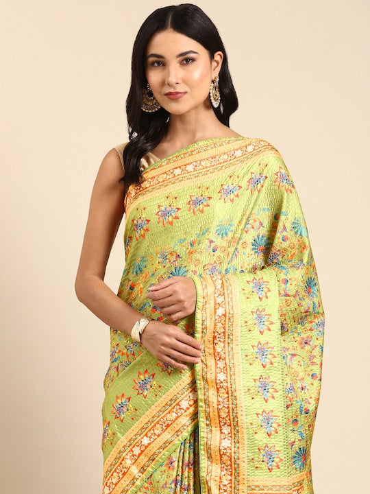 Kasee Green & Brown Floral Printed Satin Saree
