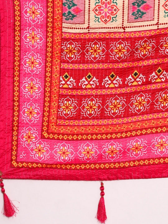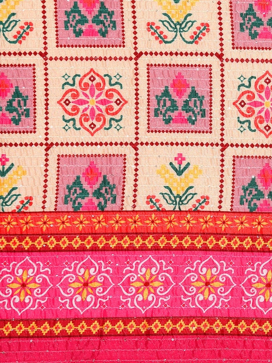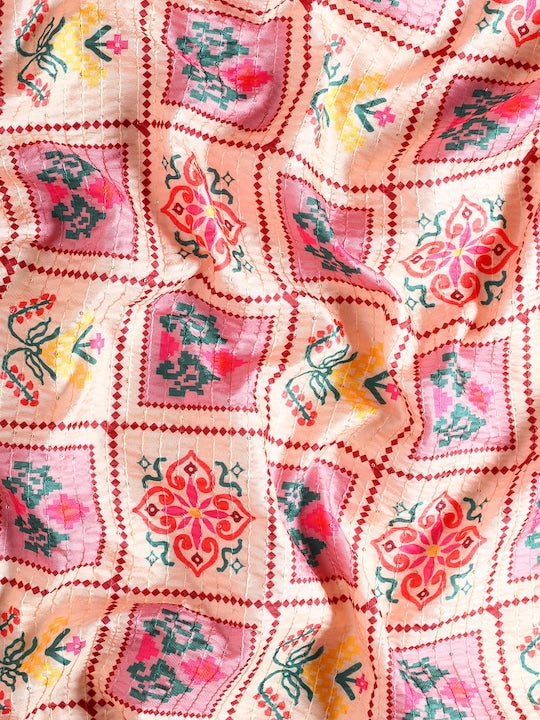 Kasee Red & Yellow Floral Printed Satin Saree