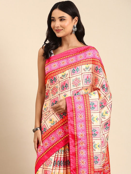 • Floral printed saree with solid border border