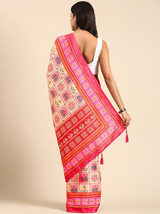 • The saree comes with an unstitched blouse piece