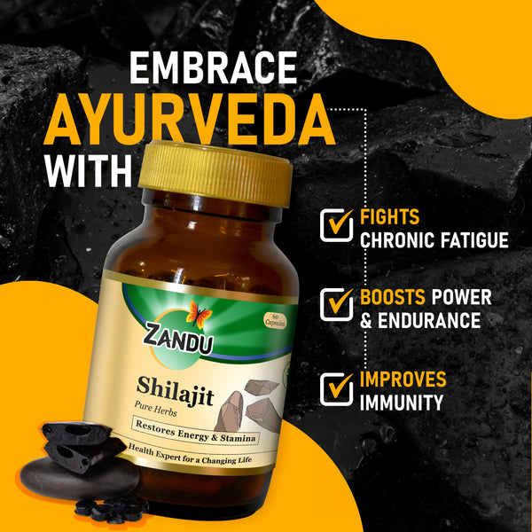 - Zandu Shilajit capsules promote metabolism and improve immunity.