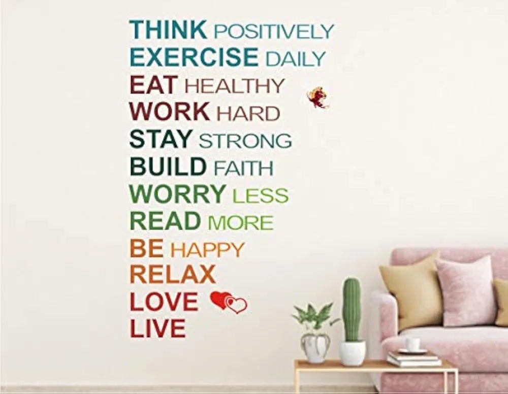 Heaven Decors Family Love Live and Think Quote Wall Sticker for Living Room Multicolour