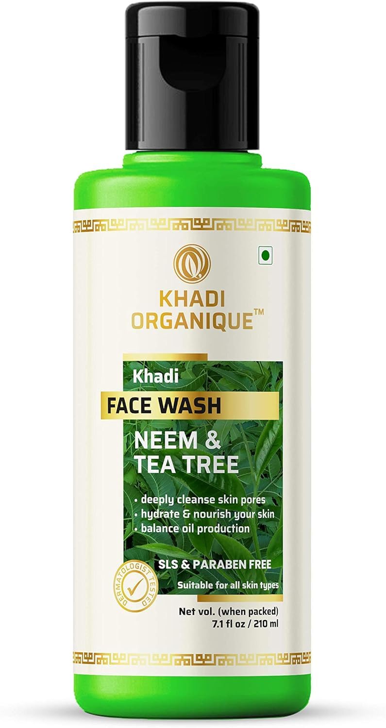 • Khadi Organique Neem & Tea Tree Face Wash is formulated with neem extract, known for its anti-fungal properties that combat acne and blackheads.