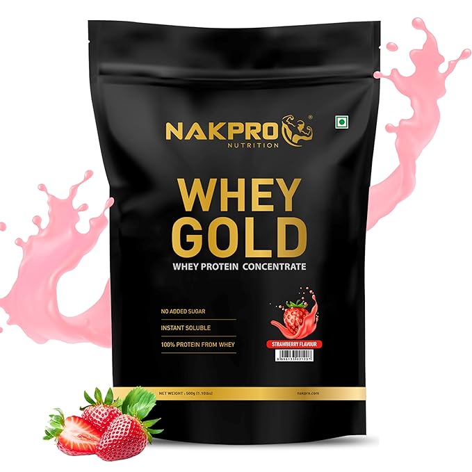 Nakpro Gold Whey Protein Concentrate Strawberry Flavour - 500 gms