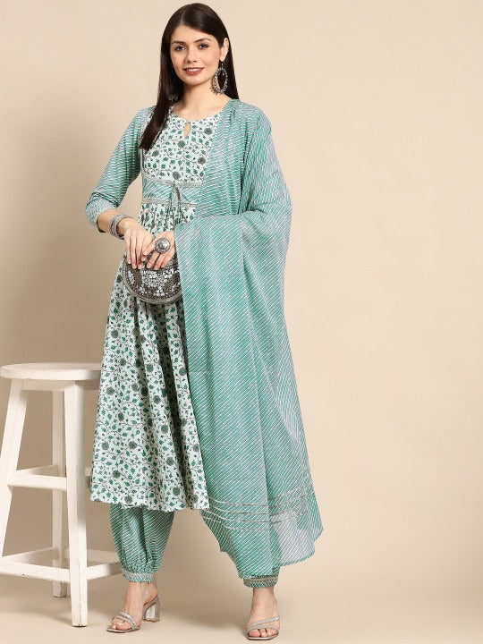 Anayna Women Green Ethnic Motifs Printed Pure Cotton Kurta with Salwar & Dupatta