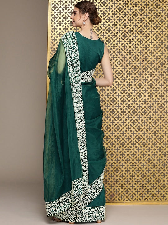 House of Pataudi Embroidered Organza Saree