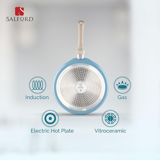 Salford by Ucook Forged Non-stick Frypan With Soft Touch Wooden Handle | Black Spatter Dusty Blue | 240mm | 1.85 Litre
