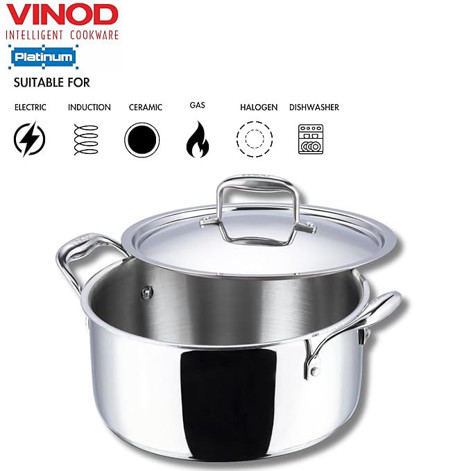 Vinod Platinum Triply Stainless Steel Saucepot with Lid - 1.8 Litre, 18 cm | 2.5mm Thick | SAS Bottom | Biryani Pot