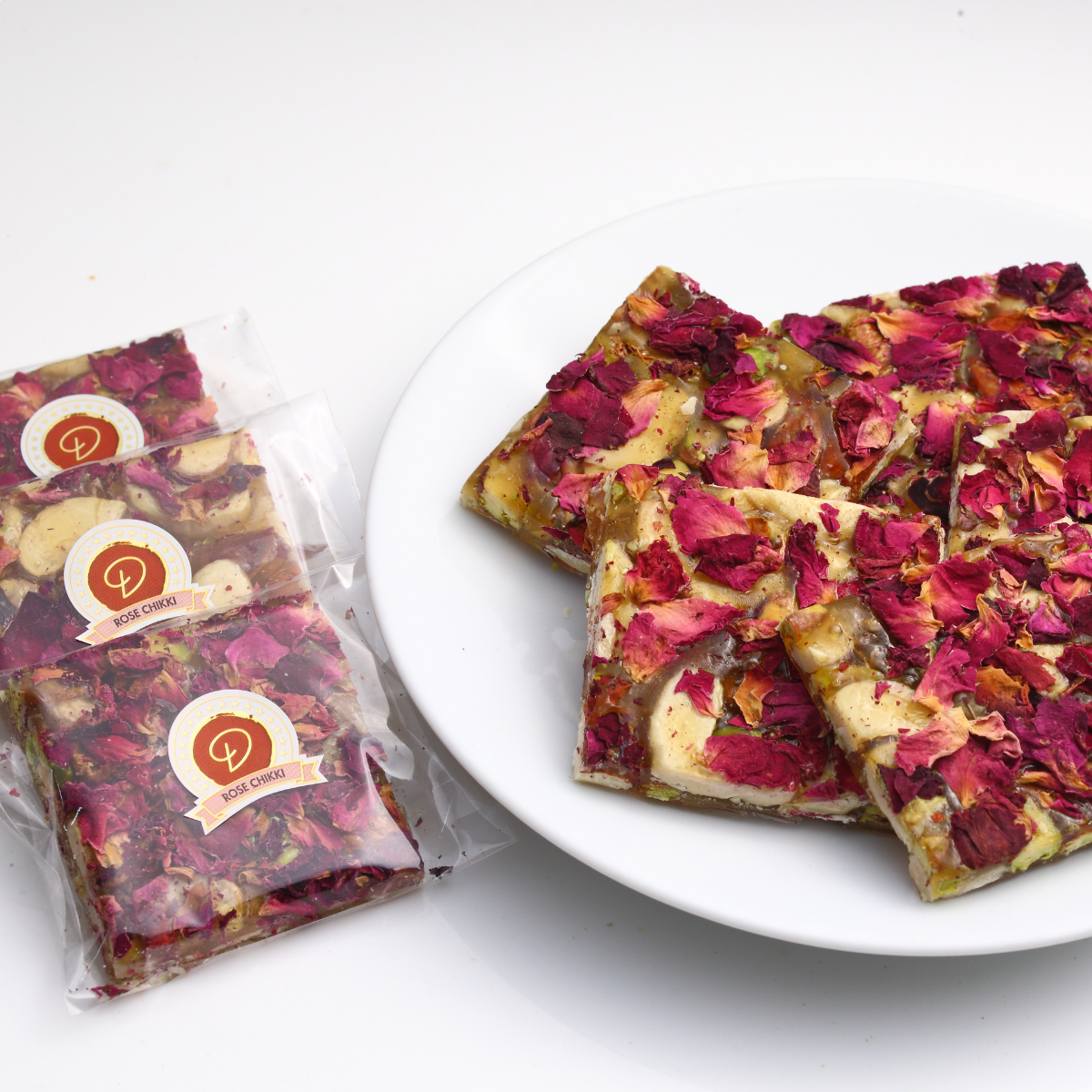 - This particular version of rose chikki is based on a well-known type we would get during trips to Lonavala, a hill station outside of Mumbai.