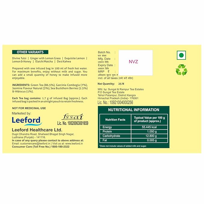 Leeford Green Tea Aqua Slim for Weight Loss - 25 bags (Pack of 2)