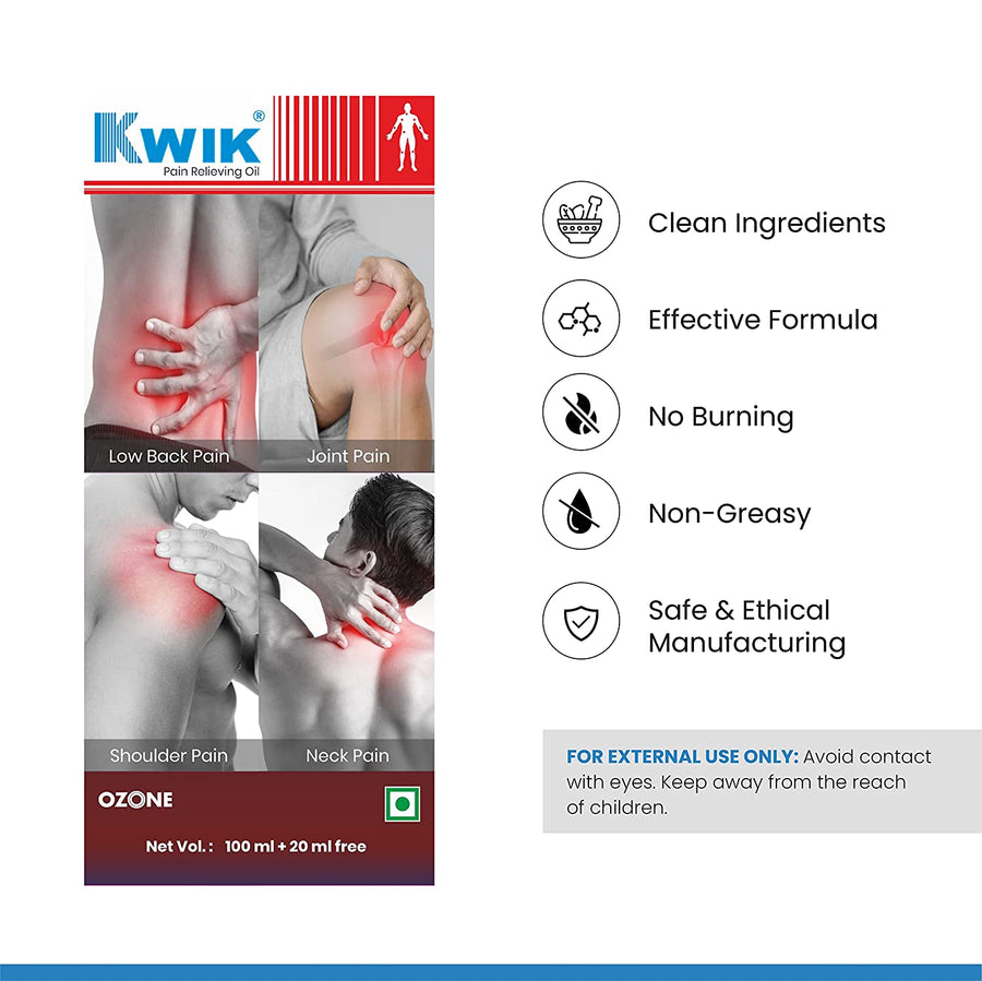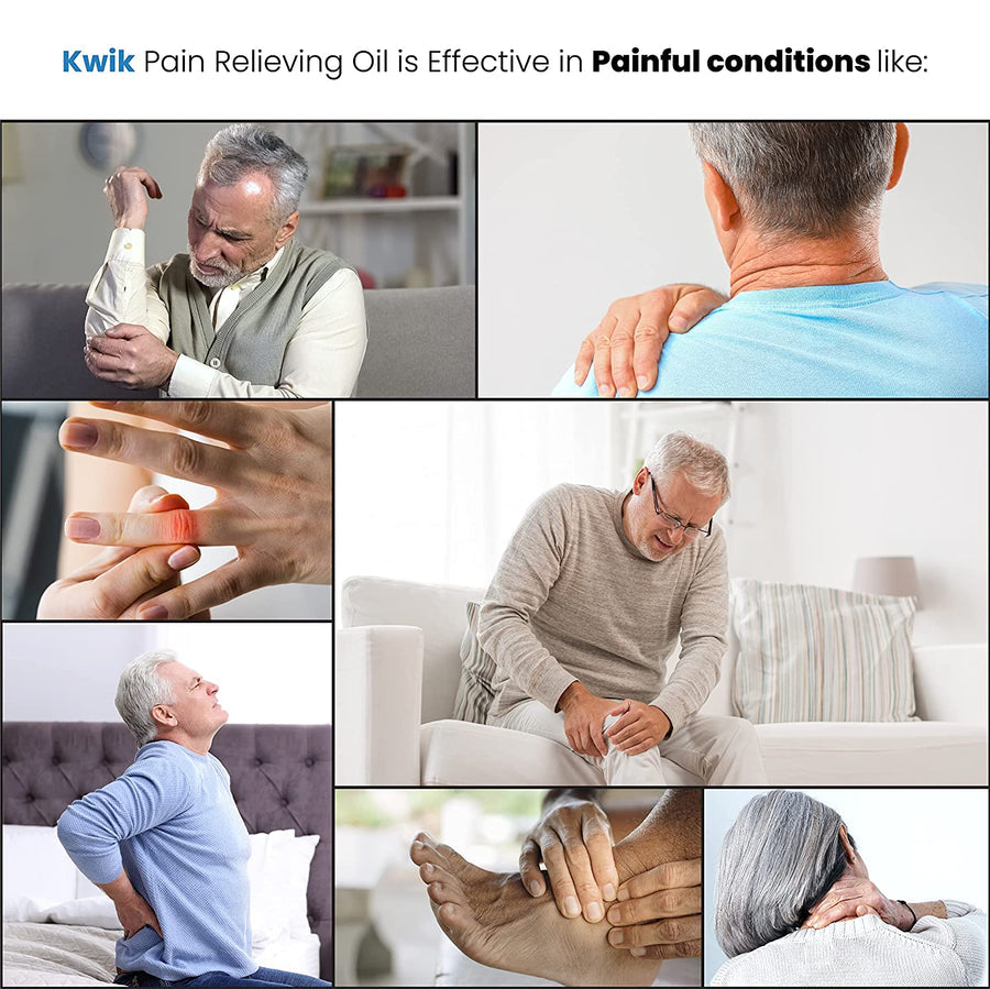 • When the affected area is massaged with Ozone Kwik Pain Relieving Oil daily, they have more energy, flexibility, and spirit in their pain-free lives.