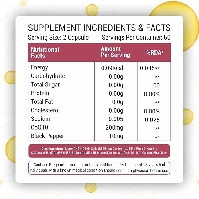 • Enhances Cellular Energy: Improve cellular energy production and overall vitality with Prasatti Herbal Organic Coenzyme CoQ10 Supplement Capsule. Also helps in enhancing Coenzyme CoQ10 supplement for fertility for women.