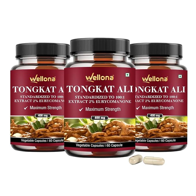 Wellona Tongkat Ali Supplement Root Extract 400mg - 60 caps Each (Pack of 3)