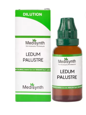 - Medisynth Ledum Palustre Dilution (Marsh Tea) is a homeopathic blend known for its potential benefits in various situations. It may assist in the management of puncture wounds, bruises, and minor bites caused by sharp objects. Additionally, it could offer support in cases of rheumatism and gout.