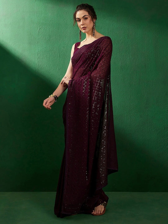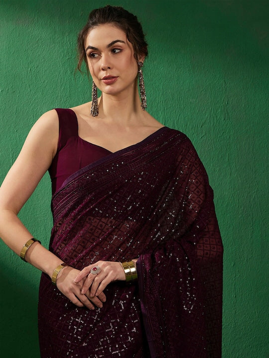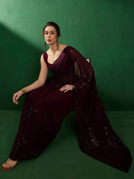 Sangria Embellished Party Wear Saree