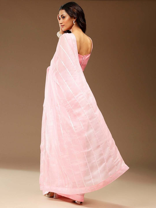 - Pink & silver-colored saree