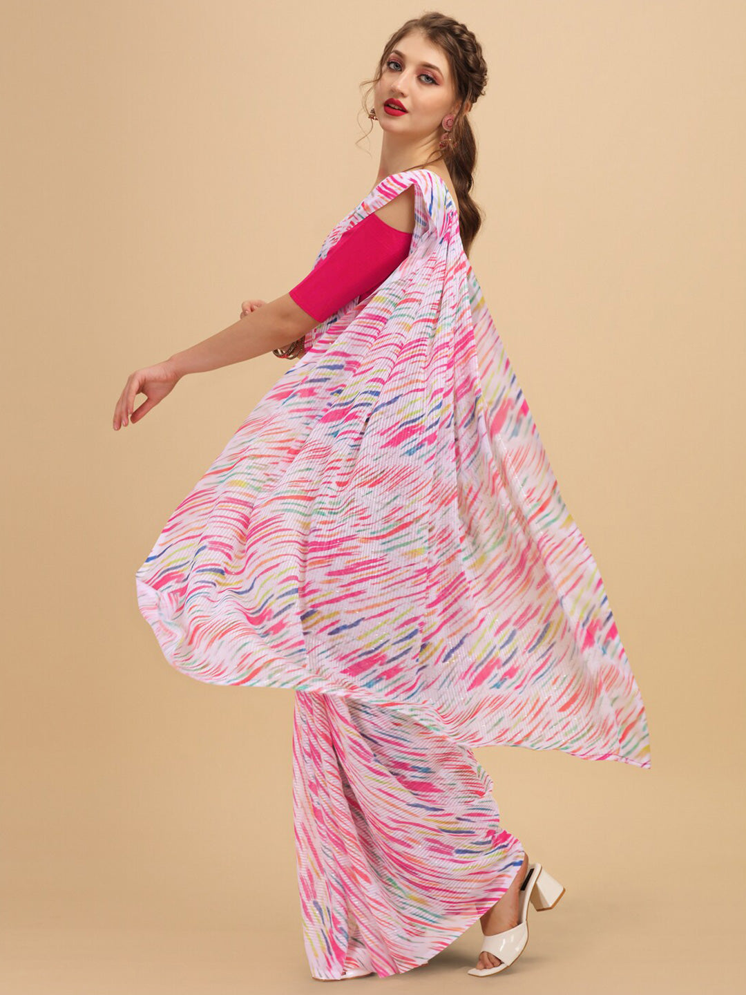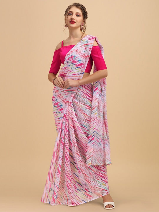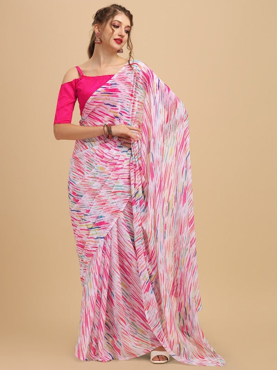 - Pink, blue & white saree