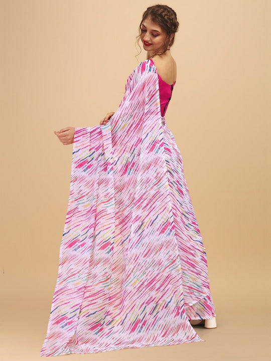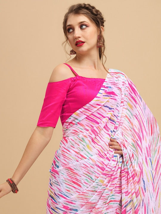Sangria White and Pink Abstract Printed Saree