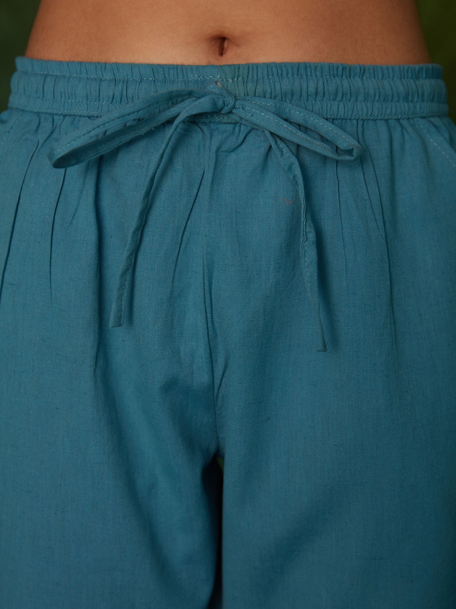 - Elevate your casual style with this comfortable cotton kurta and pant set in a soothing sky blue color. The kurta features an attractive printed pattern, a regular fit, and a convenient slip-on style with a round neckline. It is complemented by three-fourth sleeves, making it ideal for various casual occasions.