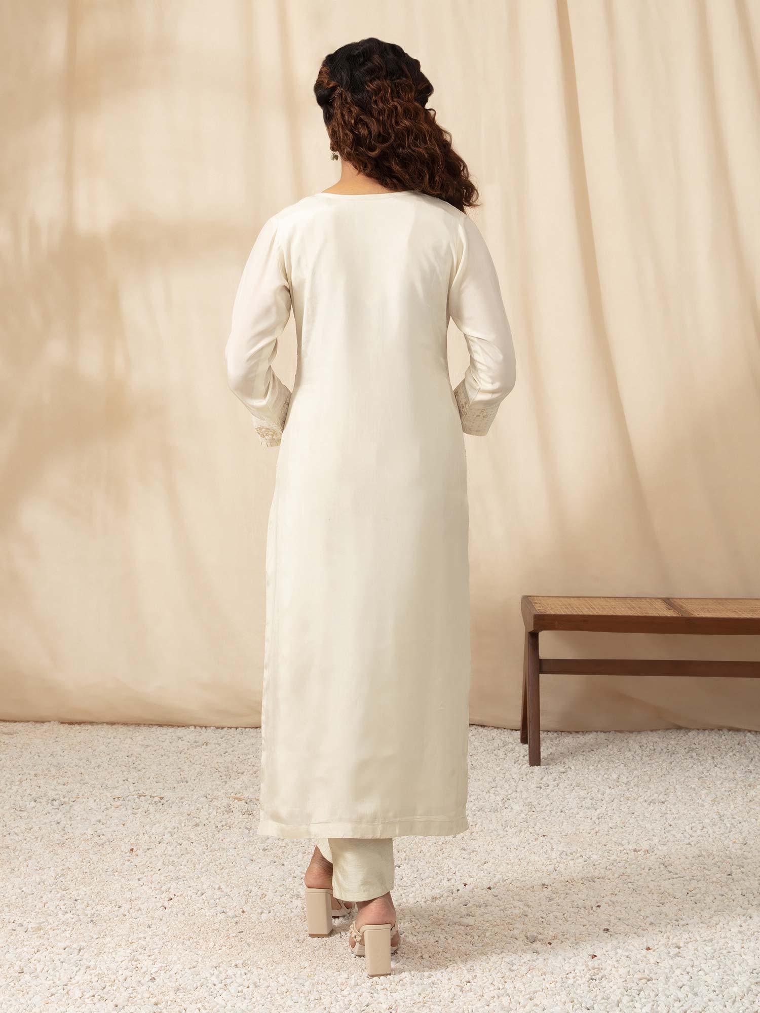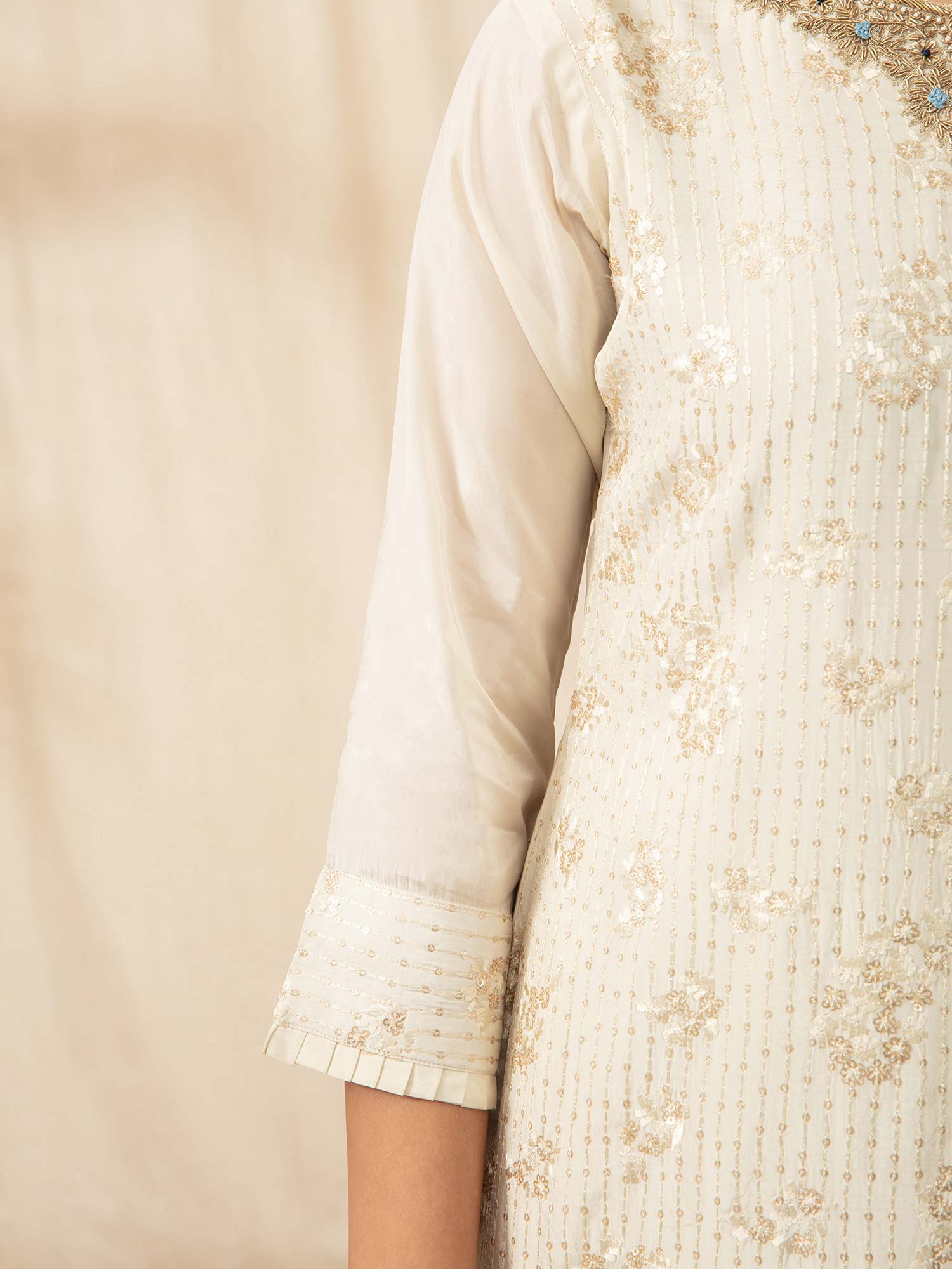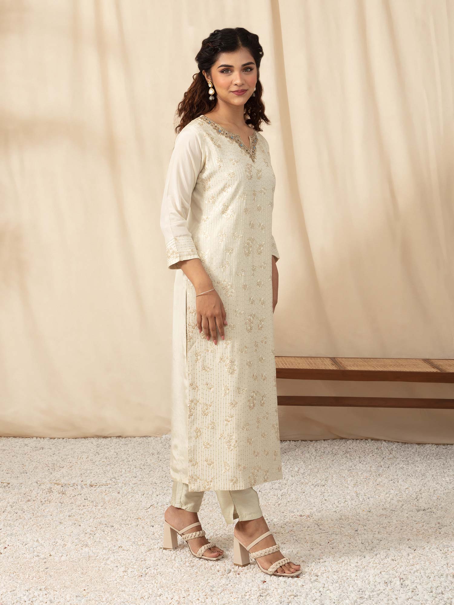Likha Ivory All Over Embroidered Aline Kurta Pant Set Dupatta LIKSKD58 (Set of 3) - L
