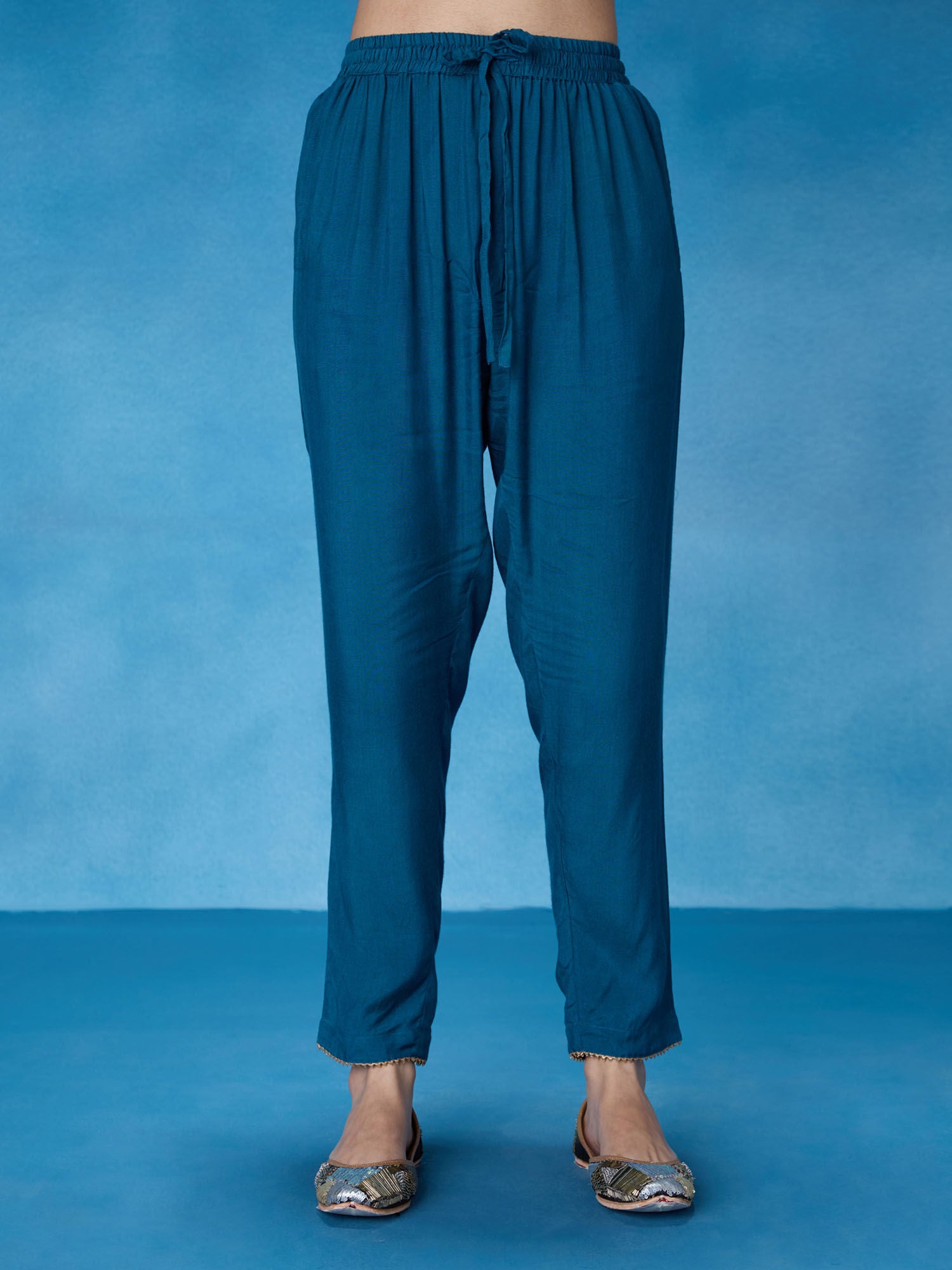 Likha Teal Rangbahar Lurex Chanderi with Sequence Co-ord Set LIKSKD266 (Set of 2)