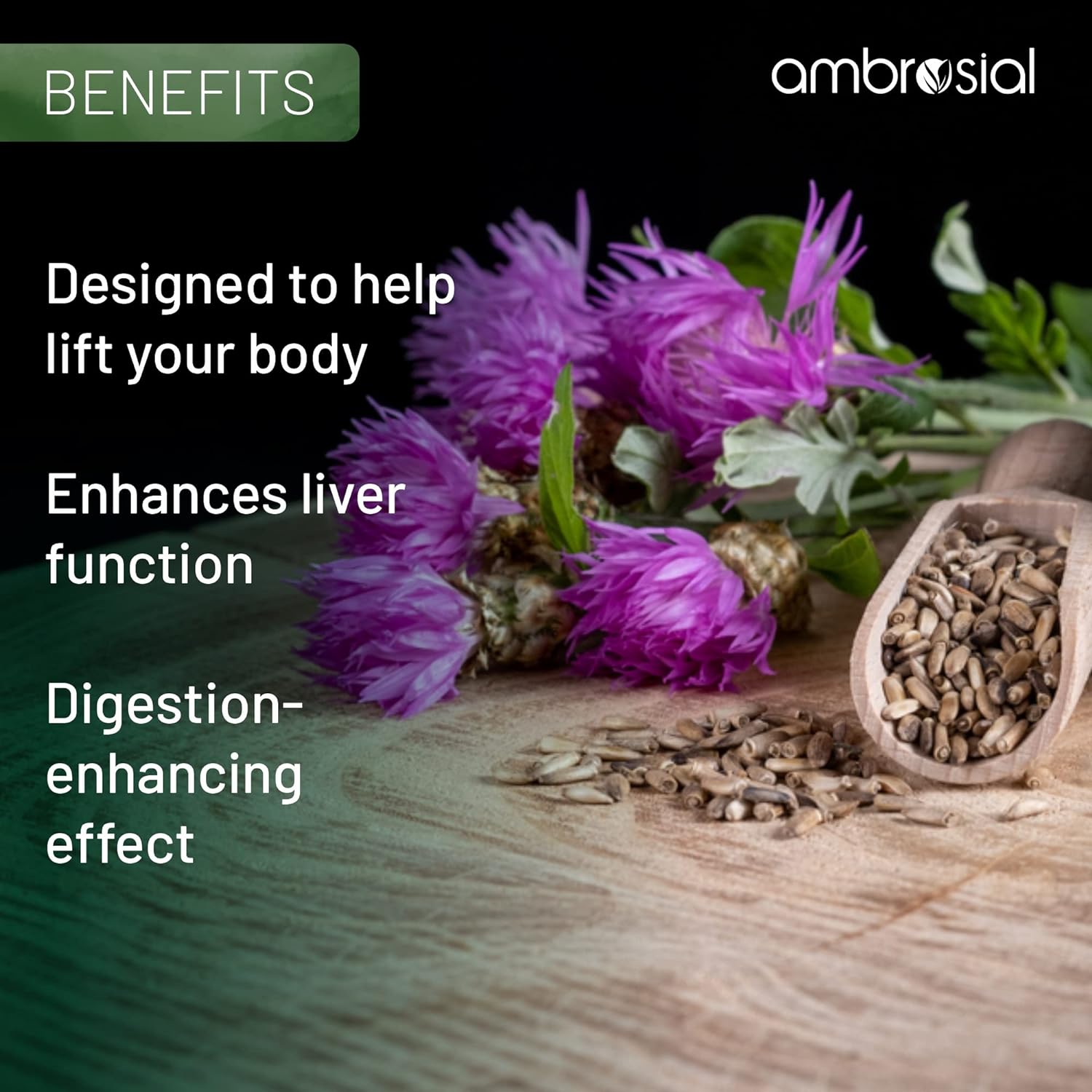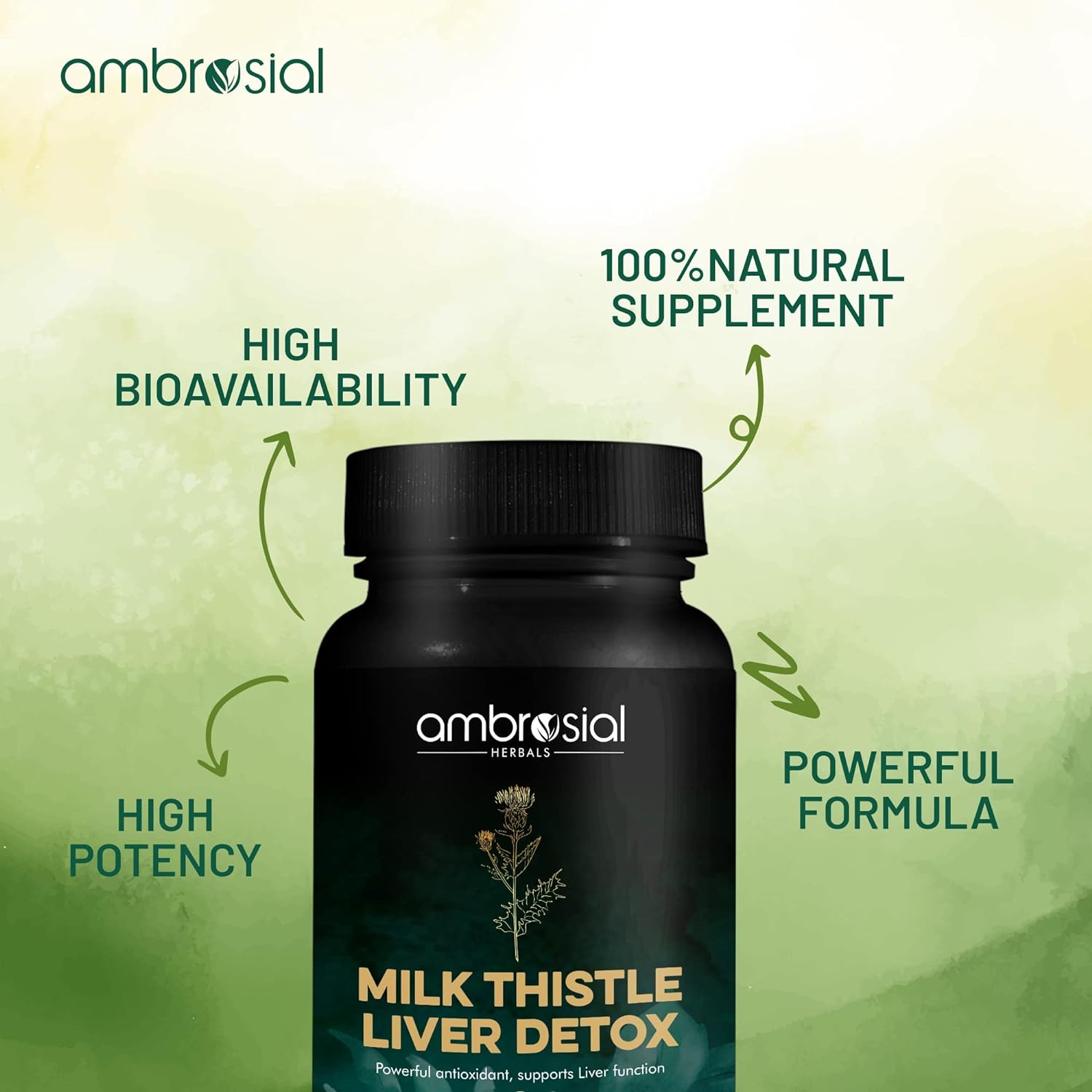 • Detoxifies Liver Naturally: Our Ambrosial milk thistle supplements work naturally to remove damaging free radicals, detox impurities, and flush out toxins.