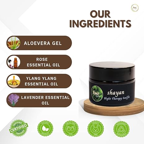 • Dual Functionality: Night Cream and Sleep Mask: Not just a skincare product, Shayan doubles as a sleep mask, gently exfoliating away dead skin cells while providing a calming and soothing environment for a peaceful night's sleep.