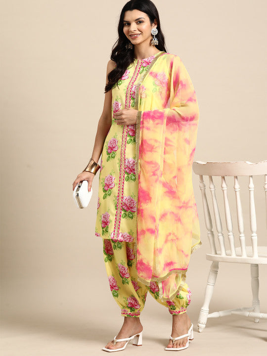 Anayna Women Floral Printed Regular Gotta Patti Kurta with Harem Pants & With Dupatta