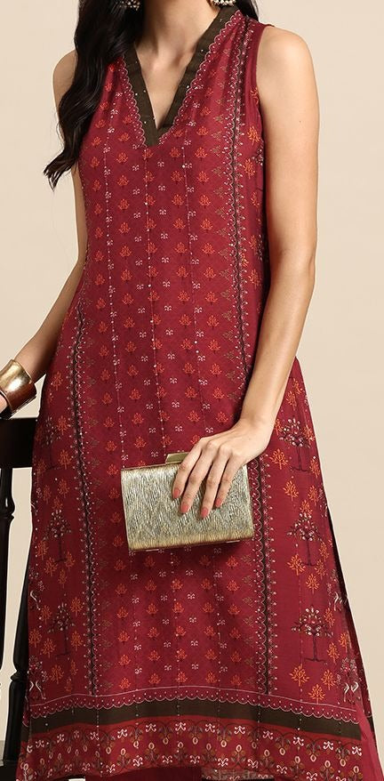 • Red printed Kurta with Trousers