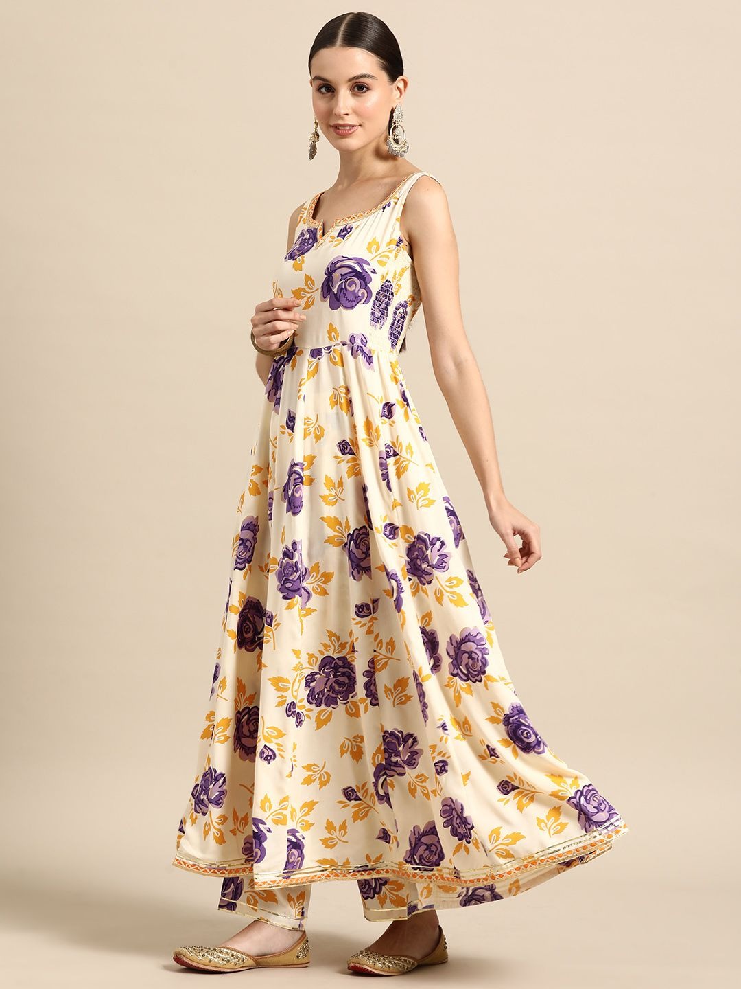 Anayna Women Floral Printed Pleated Gotta Patti Kurta with Trousers & With Dupatta