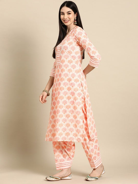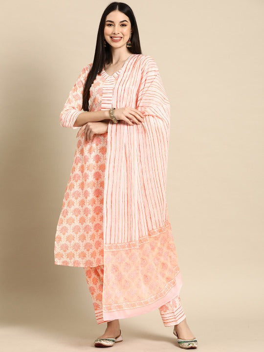 • Peach-coloured printed Kurta with Salwar with dupatta